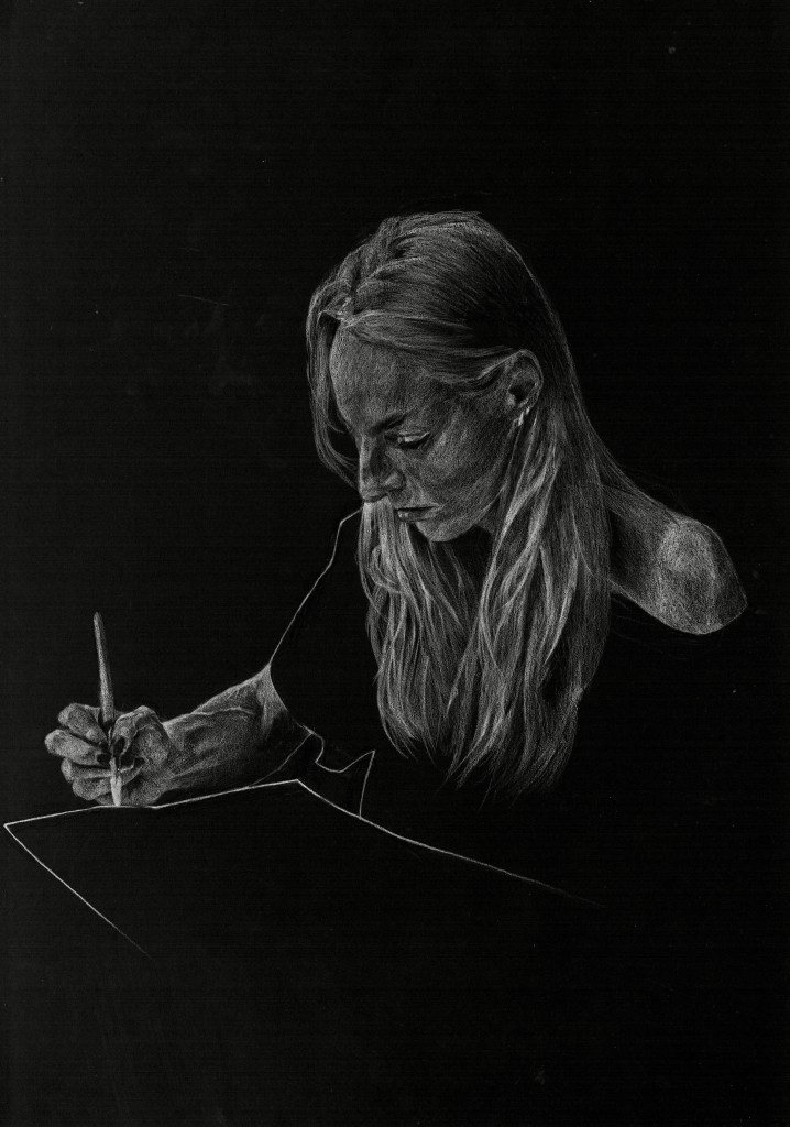 ‘Sam’ White Pencil on Black Paper