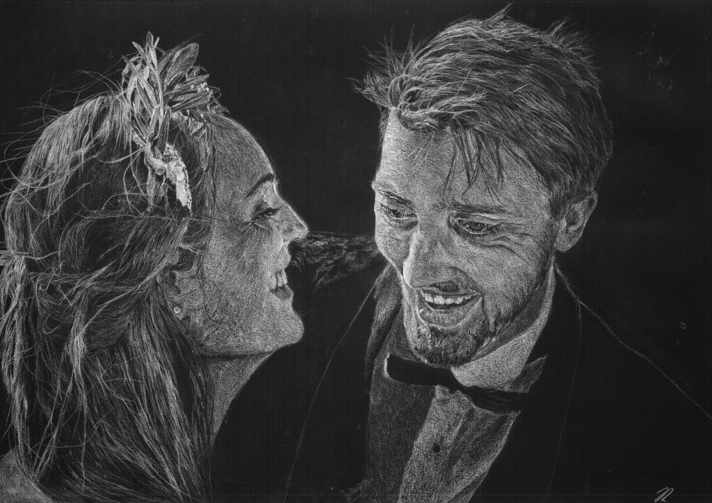 ‘Marcus and Baree’ White Pencil on Black Paper – Wedding Commission